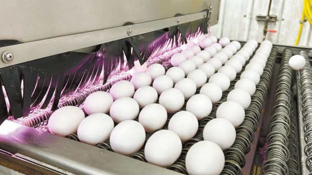雞蛋在加州佩塔盧馬的「Sunrise Farms」加工廠進行清潔和消毒。美聯社