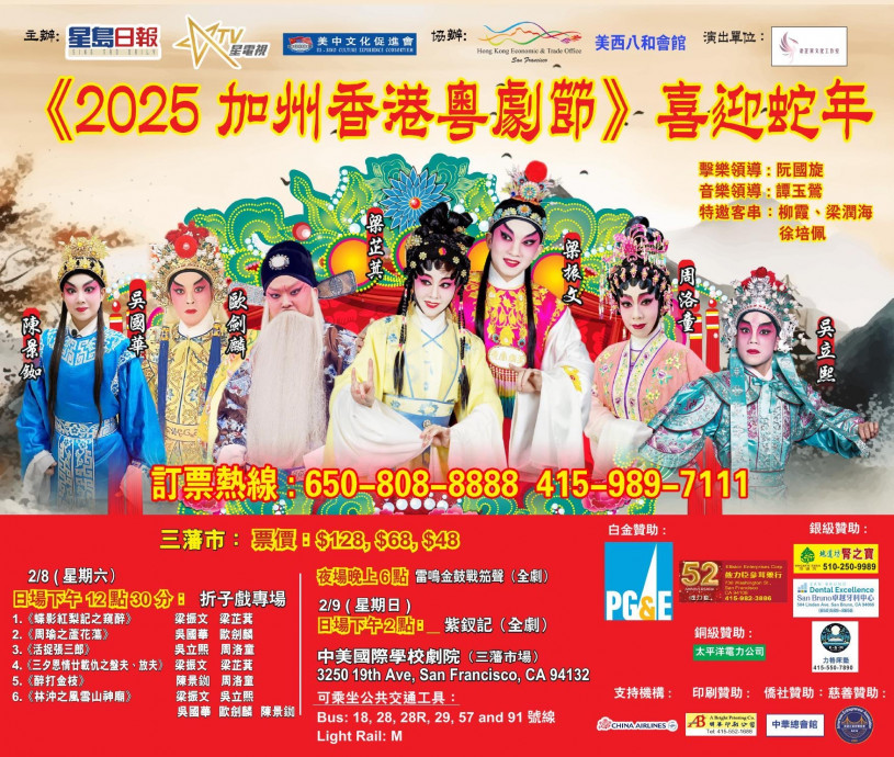 《2025 加州香港粵劇節》將於2月8日至9日盛大舉行! 除了為你帶來無比豐富的劇目陣容之外,還特別以「喜迎蛇年」為主題,為觀眾呈現一場別具意義的藝術盛會。從蕩氣迴腸的愛情故事到刀光劍影的英雄傳奇,這次的演出將讓你充分感受粵劇的萬千魅力。