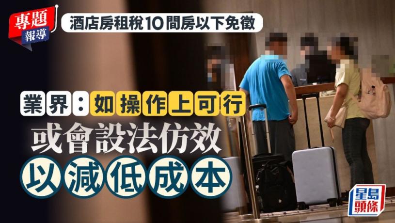 (酒店/房租稅/減低成本)房數不足10間的酒店或賓館可豁免3%酒店房租稅,是否存在「避稅灰色地帶」及對業界造成不公平?有酒店業界人士認為,整體經濟環境不太樂觀,若舉措屬法律容許,經營者節省成本也無可厚非,笑言如操作上可行,相信業界也會設法仿效,以減低成本。他亦反映酒店房租稅由酒店代政府收取,已為酒店增加額外行政成本,而部分網上訂房平台計算佣金時不剔除稅項,冀政府協助業界與網上平台溝通,豁免稅項佣金,「例如1000元房租,收3%稅即30元,但這些網上平台連30元都要抽佣;假設平台本身抽20%佣,即酒店要額外再支付6元,這並不合理。」