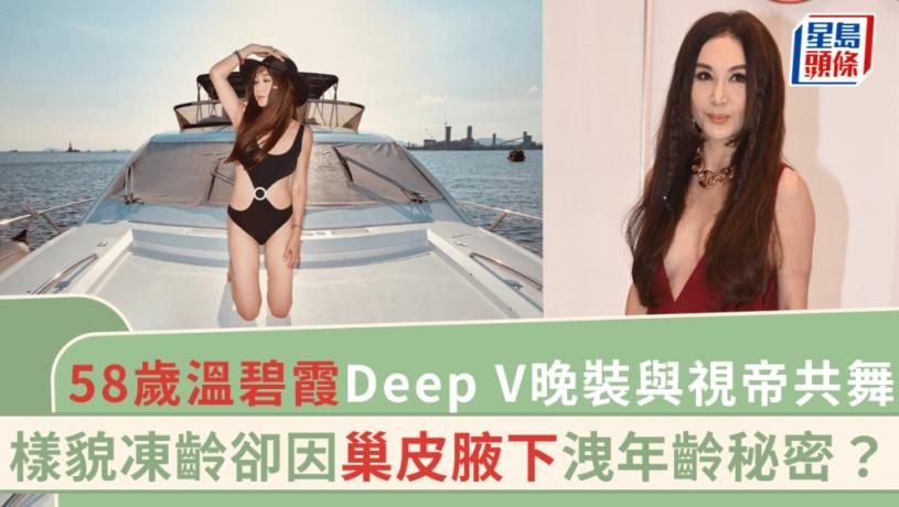 58歲溫碧霞入行超過40年,90年代憑劇集《火玫瑰》中的「海潮」一角深入民心,亦曾在另一套TVB劇集《封神榜》中飾演美艷動人的「妲己」,獲得「最美妲己」封號。溫碧霞因樣貌及身材保養得宜,完全不像已年過半百,故一直被封「凍齡女神」,近日她與歐陽震華拍片,卻被指因一個部位鬆弛而出賣年齡。