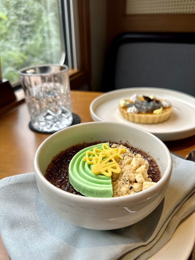 車廂裡有一個酒吧,職員隨時在那邊替我們預備飲品和食品。我飲了一杯椰奶咖啡,奶泡豐厚細滑,就是咖啡太濃了點。喝完我坐不下來,在車廂走來走去。幸好車廂寬敞,每次看見我出出入入,職員的臉上都帶著溫暖的笑容。
