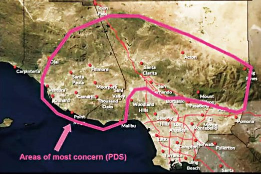 為汽車和發電機加滿油,固定好戶外物品,並調整旅行計劃。」除了馬里布和阿爾塔迪納(Altadena)外,警告區域還包括伯班克、聖克拉麗塔、奧克斯納德、千橡市和阿蘇薩。奧海(Ojai)和帕薩迪納都在警告範圍之外。