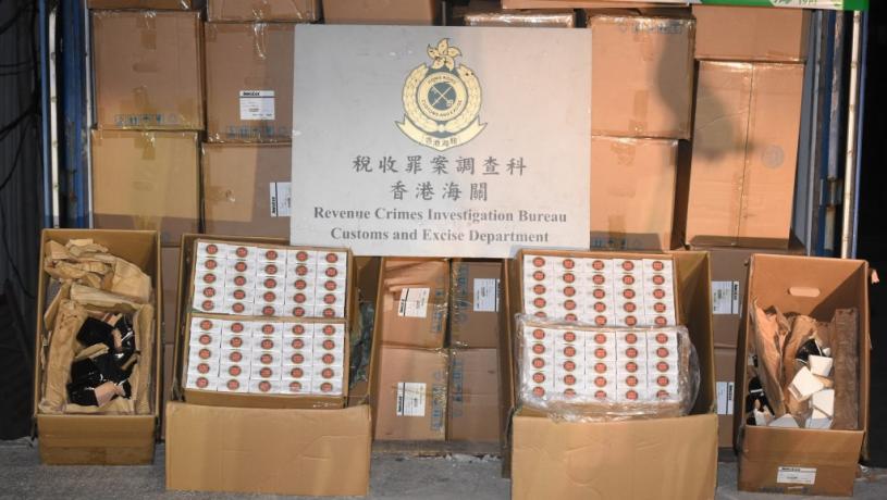 海關稅收罪案調查科稅收調查第一組調查主任趙啟榮表示,海關人員在周一(20日)黃昏時間,在上水文錦渡進行反私煙巡邏,在缸瓦甫一個鐵皮場內,發現一輛載有40呎長貨櫃的貨車,場內有一名可疑男子,海關人員隨即進入鐵皮場調查。剛初步檢查,人員發現貨櫃內貨物均用紙箱包裝,近櫃門位置發現一批陶瓷製品。作進一入調查後,人員在入面的紙箱內發一批未完稅香煙。