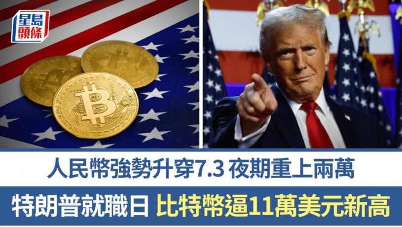 美國新任總裁特朗普今天(20日)宣誓就任,市場憧憬他兌現將比特幣納入戰略儲備的承諾,比特幣直逼11萬美元,再創歷史新高。中港市場情緒持續好轉,據報特朗普上任後未必會即時加關稅,港股外圍繼續造好,夜期見20206點,高水280點。至於美股因馬丁路德金紀念日假期休市一天。