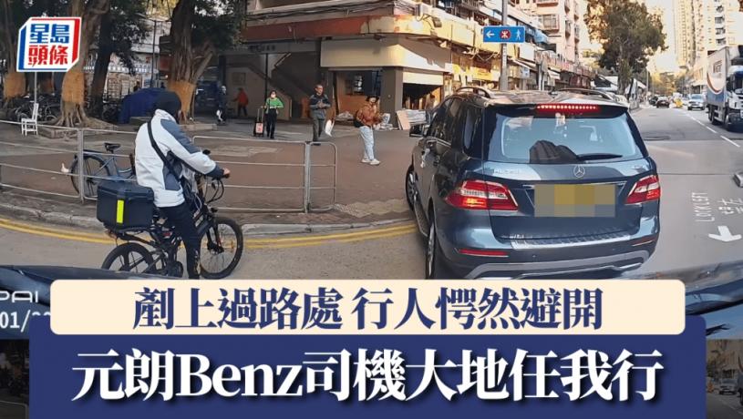 元朗有私家車當着行人面,直接從過路處剷上行人路,車Cam片段流傳引起網民嘩然。片段所見,事發於今日(1月20日)下午4時許,一部平治(Benz)私家車沿鳳翔路行駛,駛至鳳攸北街交界時,平治竟然迎着等候過路途人的正面,直接剷上行人路。途人見狀後,愕然紛紛散開,就連尾隨的車Cam車輛司機亦不禁「嘩」了一聲。最後車Cam車輛駛走,未知平治最終目的地為何。