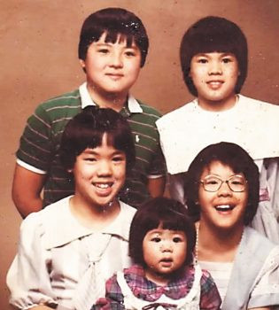 湯偉麟同四個妹妹合影。 檔案圖片