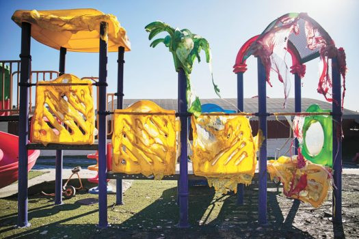 阿爾塔迪納市一所學校的戶外攀爬架遭伊頓大火燒毀。美聯社