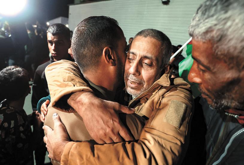 在加沙南部汗尤尼斯的另一個交換點,在身穿黑色制服的蒙面槍手面前,另外兩名獲釋以軍人質,80歲的Gadi Moses和29歲的Arbel Yahud相互擁抱。《衛報》報道指,哈馬斯同日也釋放5名泰國公民。