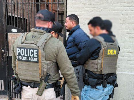 民調結果出爐之際,全副武裝的聯邦移民局人員於上周在紐約採取行動,針對那些因謀殺、綁架和其他令人髮指罪行而被通緝的移民。被捕者包括25歲的帕切科(Anderson Zambrano-Pacheco),他是臭名昭著委內瑞拉幫派「阿拉瓜火車」(Tren de Aragua)的頭目,移民官員在布朗士一間公寓內把他拘留。