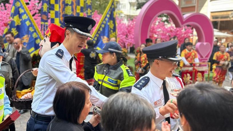 警方向市民拜年並派發特色利是及紀念品,推廣道路安全。