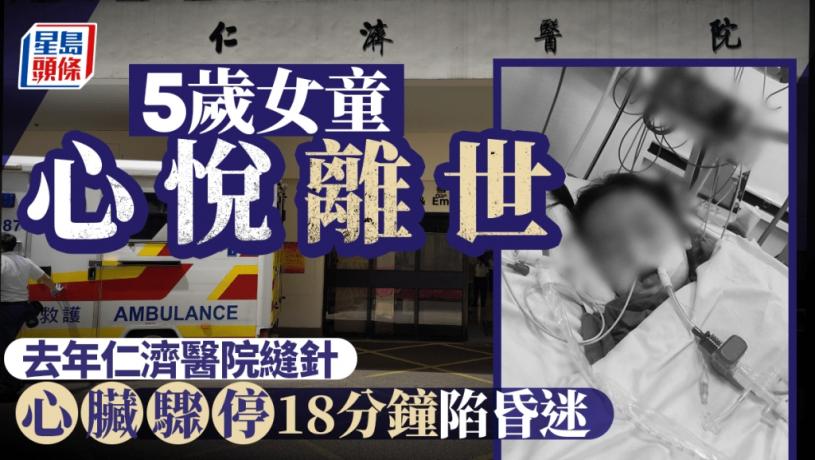 5歲女童心悅去年5月在仁濟醫院急症室縫合後腦位置傷口3針後心臟驟停18分鐘,需留醫深切治療部,她今早(5日)在瑪嘉烈醫院不治離世。醫管局九龍西聯網回覆時指,心悅自本周初開始情況轉差,延至今天上午病情惡化離世。