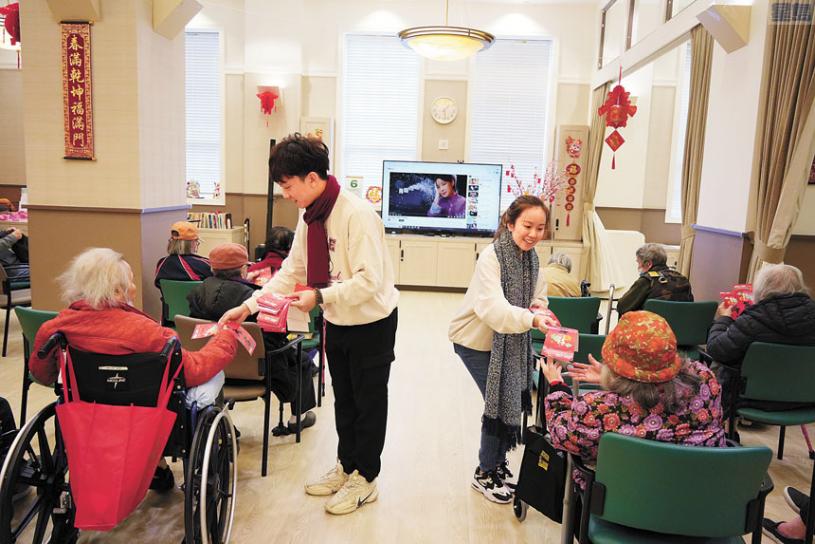 能有機會零距離接觸到來自香港年輕有為的粵劇名伶,長者們笑逐顏開,多位長者還親手向演員派發新年利是。
