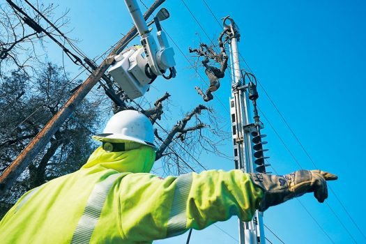南加州愛迪生電力公司工作人員在火災忙於恢復供電。美聯社