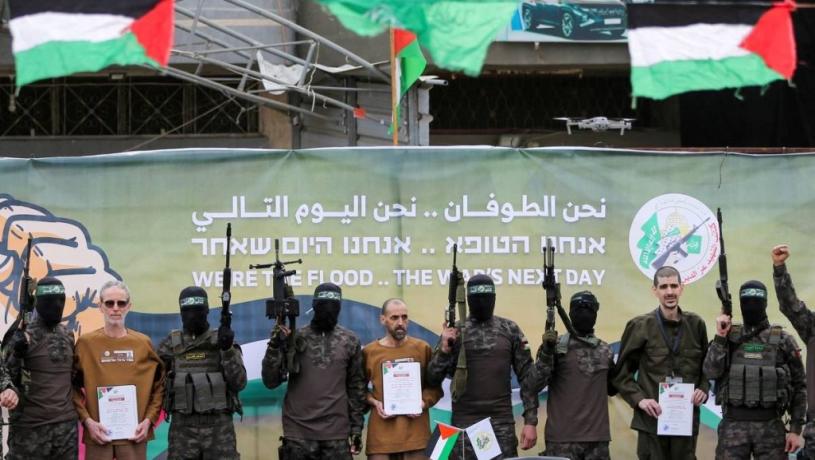 根據以色列與巴勒斯坦伊斯蘭主義組織哈馬斯(Hamas)的加沙停火協議,雙方於當地時間8日進行第5次人質與囚犯交換。3名以色列人質獲釋,目前已抵達以國領土。然而,3名人質神色憔悴,身體虛弱,並要求在交換過程中登上台上,手持「獲釋證書」示眾。以色列方面斥責哈馬斯利用人質作宣傳工具。國際紅十字會亦發表聲明,表示對釋放行動的條件越感擔憂,並敦促各方承擔責任,確保今後的釋放行動有尊嚴而且保密。