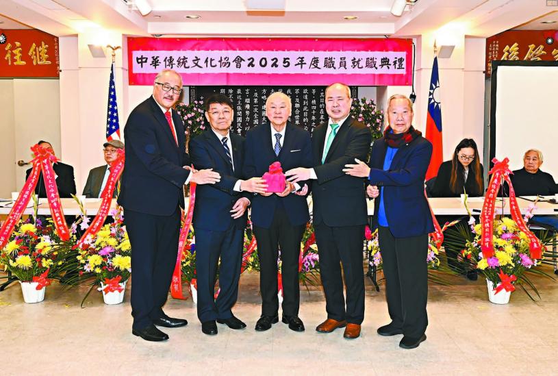 ( ▍僑社記者馬紅兵報導 ▍ )2月1日上午11時,中華傳統文化協會於金山國父紀念館舉行2025年度新屆正副會長交接典禮。金山文教服務中心主任劉岱欣;合和總會館主席余健峰;國父紀念館館長陳夏儀;國民黨駐美總支部常、合勝總堂、致公總堂盟長趙炳賢;秉公總堂、崇正會等首長嘉賓出席觀禮。中華傳統文化協會滿任會長余武良;新任會長張博器、副會長余健全、楊昆山;常務理事林炳昌、趙川三、鍾維君、周達昌、鄧灼照暨董事會同仁、僑界嘉賓出席觀禮。合勝總堂書記長陳龍贊主持交接典禮秩序。