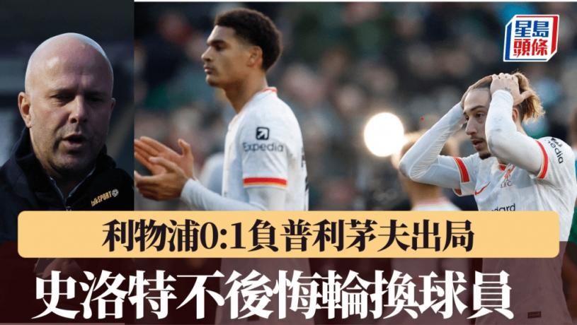 利物浦於周日英格蘭足總盃第4圈作客英冠榜尾的普利茅夫,紅軍主帥史洛特大幅輪換球員,射手穆罕默德沙拿等多名主力都不在名單中,最終爆冷以0:1落敗出局。史洛特堅持不後悔大幅輪換,更指球隊表現證明這班副選球員需要更多賽事提升狀態,以準備球季餘下比賽。