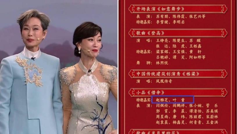 香港藝人葉童與趙雅芝在今年春晚演出,節目單上並未標註二人是「中國香港」。
