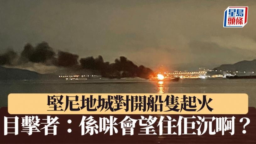 由目擊者提供的片段可見,一艘船隻在青洲對開海面起火,火光熊熊,大火黑煙逾百米直衝半空,期間船隻仍不斷前行。有目擊者稱,「正常唔會黑色煙㗎喎!」、「但佢重行緊㗎喎,做乜X啊?」、「唔通佢要自沉啊?我哋係咪要望住佢沉啊?」