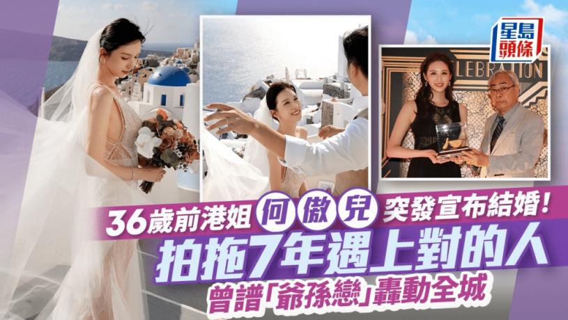 36歲的何傲兒(現名何天兒)於2007年參選港姐而入行,她曾在TVB拍過不少熱播劇集,包括《畢打自己人》、《誰家灶頭無煙火》和《波士早晨》等,2015年約滿TVB離巢。2014年,何傲兒爆出與娛樂大亨林建名譜出「爺孫戀」,又與西貢地王之子周子揚拍拖,但戀情最終無疾而終。今日(12日)元宵節,何傲兒在IG宣布結婚:「在此藍天白雲作証,跟你此生約定。」