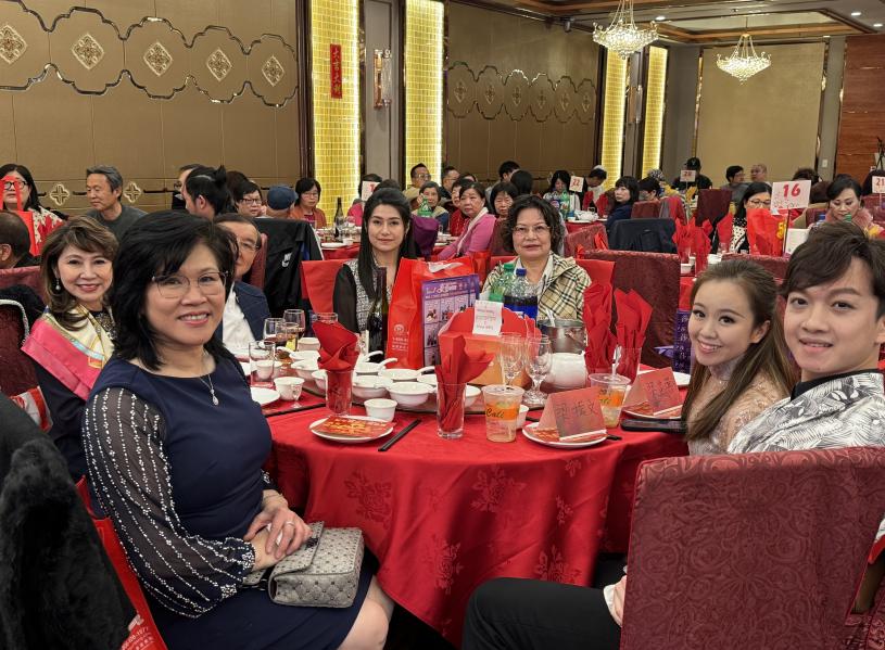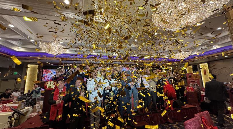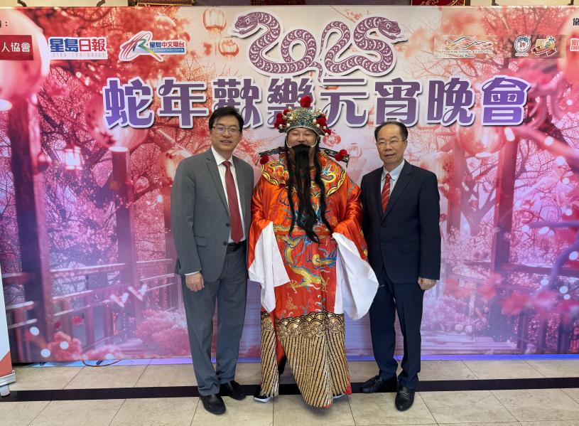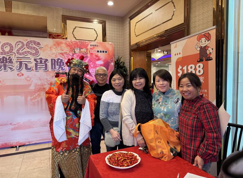 星島日報員工與財神晚會合影。記者陸新攝