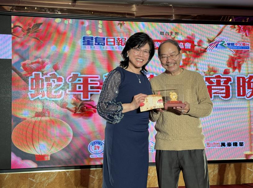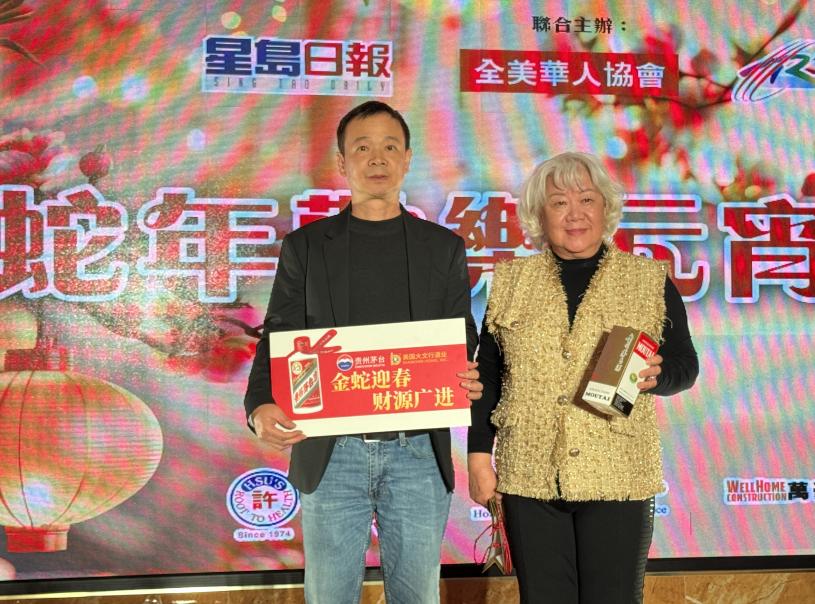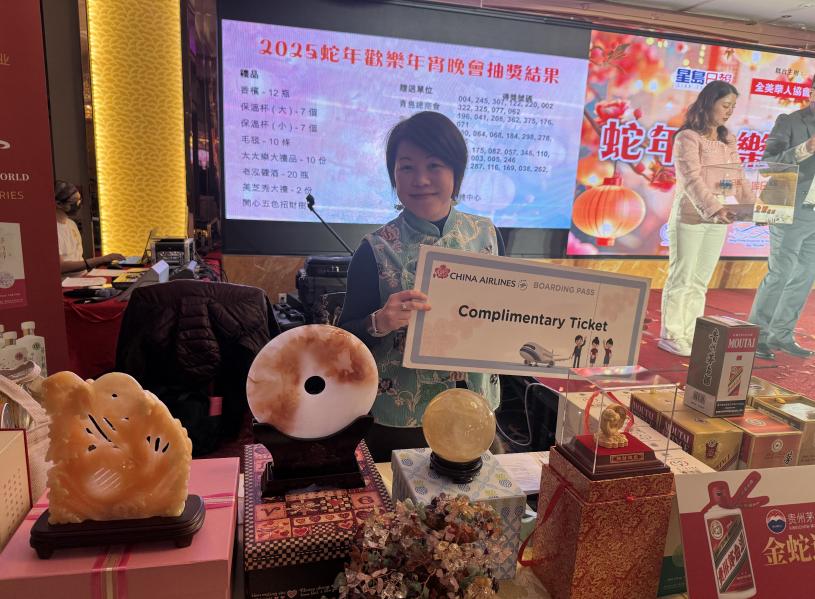 星島日報美西版總經理曹念秀為金蛇中獎者頒獎。記者陸新攝
