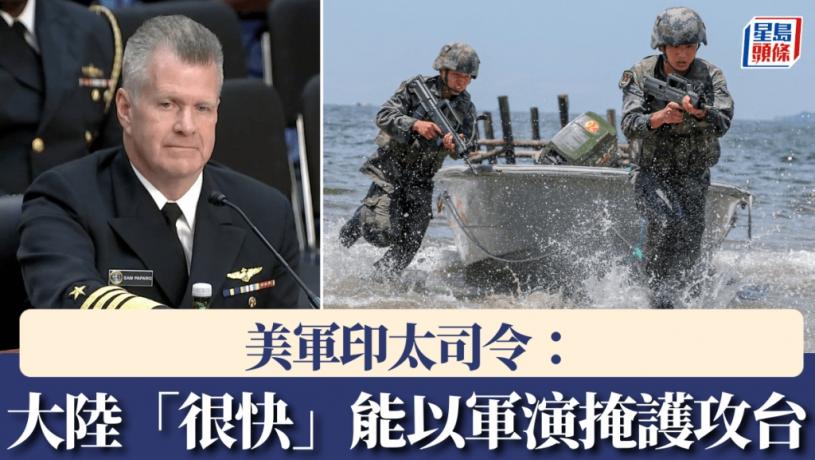 英國《金融時報》報導,美軍印太司令部司令帕帕羅(Samuel Paparo)上將稱,以中國大陸在台灣周邊舉行的軍演廣泛程度研判,中國大陸「很快」就能以軍演掩護對台灣發動攻擊。