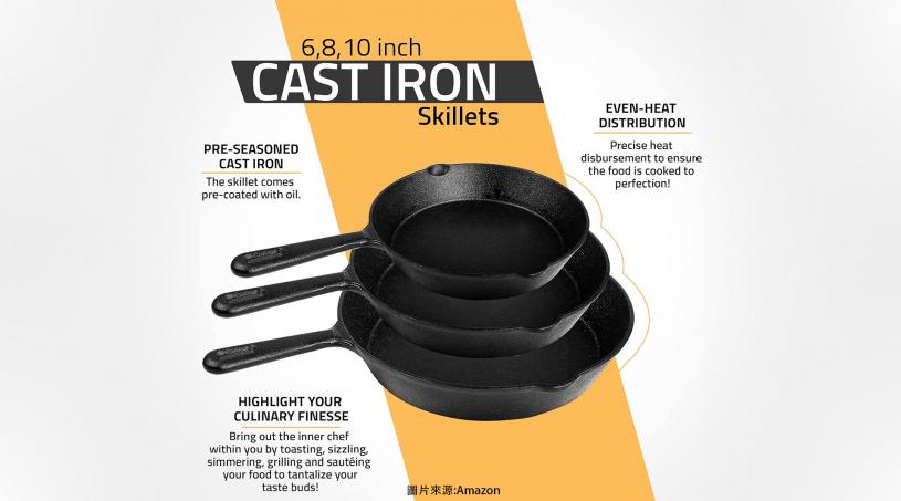 Utopia Kitchen鑄鐵煎鍋3件套,從廚房到露營一套搞定!6英寸、8英寸、10英寸全尺寸覆蓋,煎炒燉炸全能駕馭,爐灶、烤箱、烤架、篝火隨時開煮。鑄鐵鍋特有的均勻導熱力,鎖住高溫,煎牛排外酥內嫩,煮湯燉肉滋味濃厚!預先調味設計,植物油養鍋,不沾更添風味,新手直接開鍋用不怕翻車。人體工學手柄設計,穩握不燙手,戴手套也能輕鬆操控。簡單養護,每次清洗後薄塗植物油,鍋面越用越順滑,廚房神器非它莫屬!