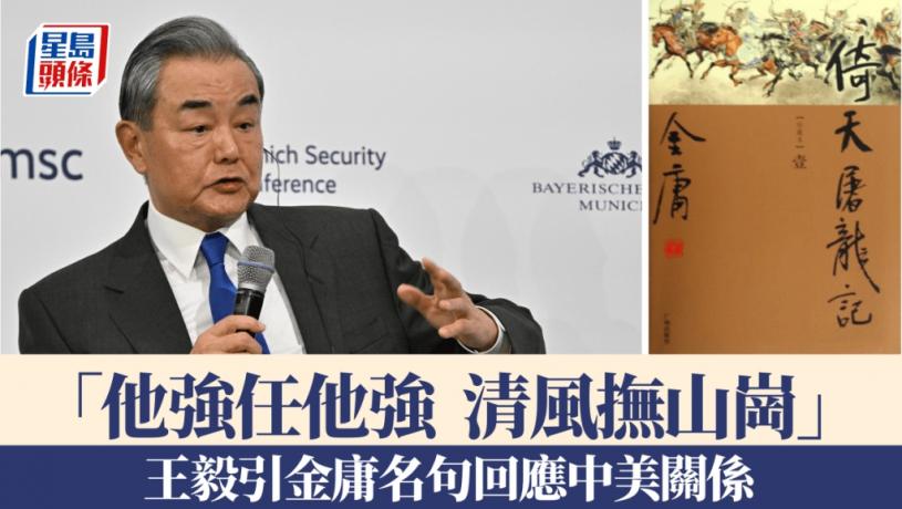2月14日,中共中央政治局委員、外交部長王毅出席慕尼黑安全會議,在回答特朗普執政之後中美關係的問題,引述了香港武俠小說大家金庸名句「他強任他強,清風撫山崗;他橫任他橫,明月照大江」。他還開玩笑說,可找DeepSeek幫忙翻譯。