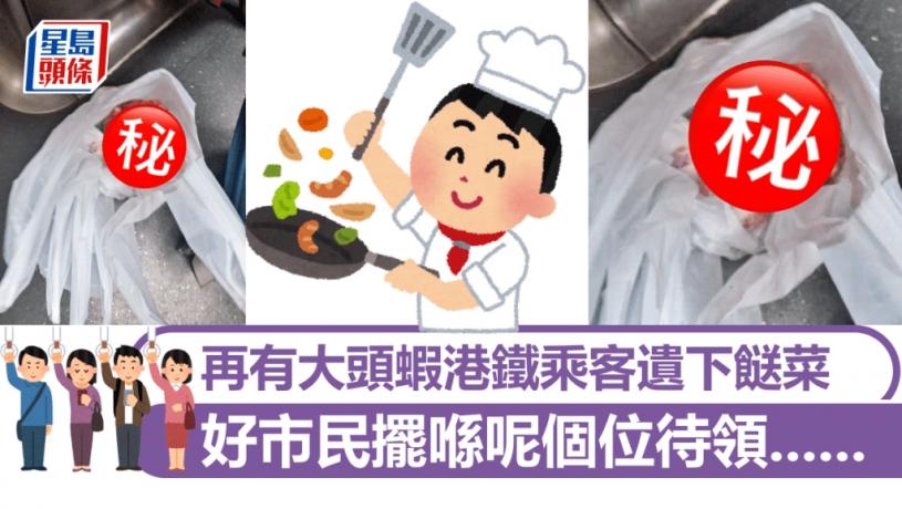 近日接連有大頭蝦市民在乘搭港鐵期間遺下餸菜,種類多元化,連同今次最新的食材,夾埋足夠煮下一道美味的「港鐵失菜大餐」。