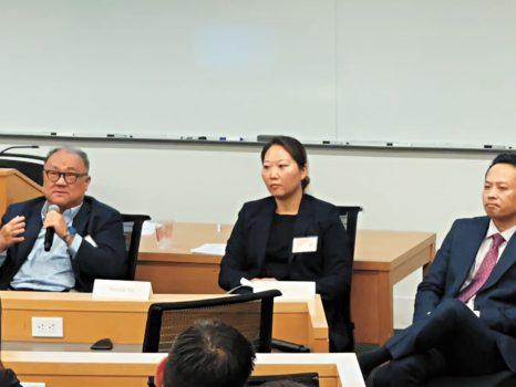 圖為于漢娜(中)此前在曼哈頓參與交流活動。