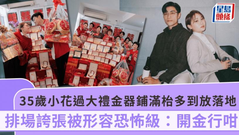 現年35歲的YouTuber兼歌手譚杏藍(小花),前年宣布跟拍拖10年的ToNick主音趙善恆(恆仔)分手,她分手後越來越富貴,不足兩個月便榮升做業主,半年後公布有新戀情,與相識多年的朋友Ronald變成戀人,更展開同居生活。譚杏藍去年8月宣布接受Ronald求婚,昨日(15日)過大禮非常大陣仗,單單龍鳳鈪都有十幾對,金器鋪滿枱大晒冷!