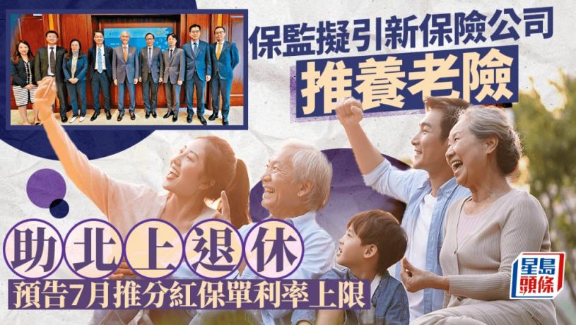 保監局表示,正研究引入全新的保險公司,提供保險產品與養老服務高度整合的嶄新服務,助港人北上養老,期望今年內可成事。此外,該局預告將於7月1日推分紅保單演示利率上限,港幣單和非港幣單的上限分別為6%和6.5%,以防業界誇大保單回報;又冀首季有針對富人的指數型萬用壽險產品在港面世,意味香港將與新加坡爭生意。