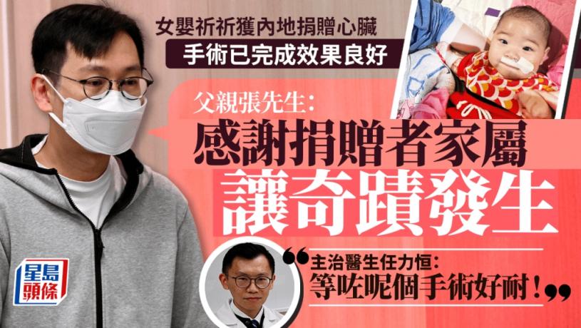 去年10月,當時年僅3個月的祈祈確診擴張性心肌病變,因急性心臟衰竭情況危殆,在兒童醫院兒童深切治療部留醫,急需進行心臟移植;醫管局當時為祈祈作出器官捐贈呼籲,稱已將祈祈納入心臟移植輪候名單,是同體型病人首位;祈祈在去年10月已開展與內地配對機制。