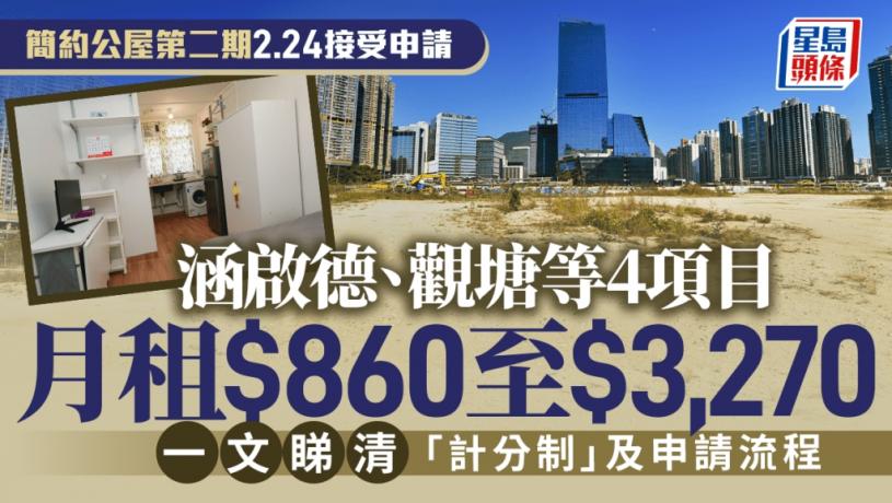 【簡約公屋/房委會/公屋/啟德/過渡性房屋/劏房】第二期簡約公屋今日(2月24日)起接受申請,合共可提供約5,060個單位,包括啟德世運道(第一期)、屯門青福里(即屯門第3A區)、觀塘順安道(由校舍改建)及上水彩園路(由校舍改建),預計於今年第四季起陸續入伙,租金由860元至3270元不等。房屋局早前向7.7萬名輪候傳統公屋3年或以上人士寄出申請表,而第一期未獲配人士,按原有資料已自動申請第二期,不用重複申請。