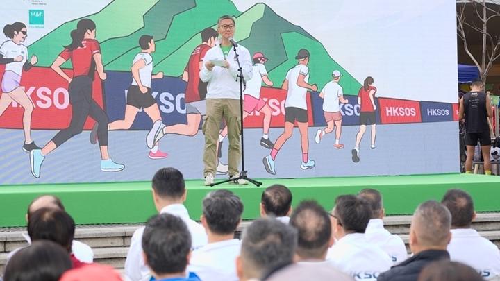 蕭澤頤(中)主持HKSOS越野跑起步禮。