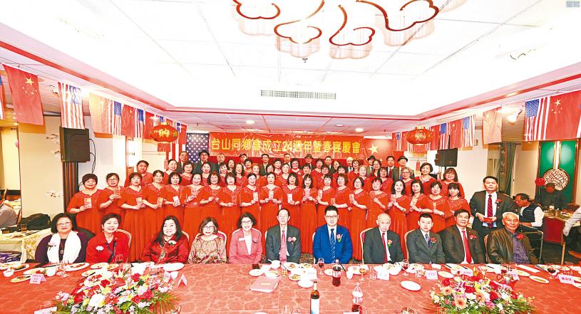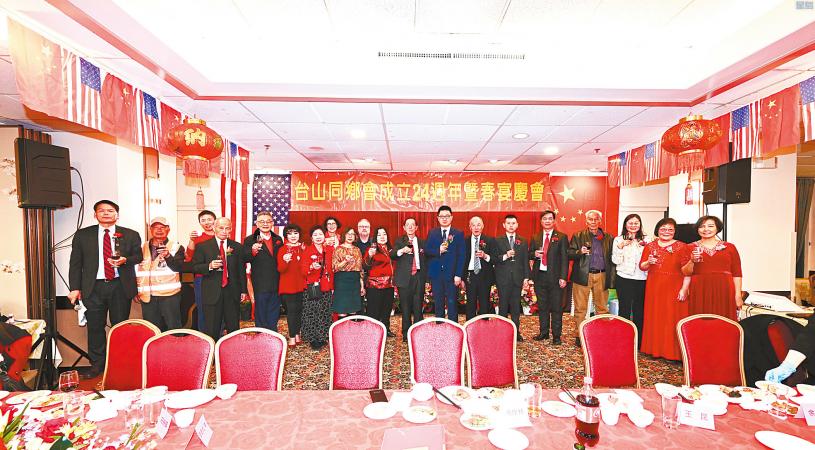東灣台山同鄉會於2月9日晚假座屋崙金牡丹海鮮茶寮舉行春宴暨成立 24周年慶會。中領館領僑處副主任王昆、領事宋雨桐;前國會議員芭芭拉. 李、屋崙代市長kenvin Jerking;阿拉米達縣市長Marilyn Ezzy Ascraft、阿拉米達縣議員勵琪、阿拉米達縣議員譚蓮娜代表、阿拉米達縣勝利亞警長代表阮溢鵬、屋崙華埠促進會主席莊錦鎮醫生;舊金山灣區中國統一促進會第一副會長黃楚文、副會長伍柱偉、陸作成、辦公室主任吳康華;屋崙英端工商會元老黃龔蔓莉、會長黃卓棠、副會長黃榮治;屋崙萃勝工商會會長張永梅、元老曹翊翎、趙國健、關莉梨;上海協會會長李美玲;加州中山同鄉會長林錦超、常務副會長劉金賢、余志毅、副會長蕭強;屋崙黃氏宗親會主席黃文正、副主席黃偉楊、元老黃有為、美西總長黃潮錚等出席聯歡。副主席黃艷紅、副主席曾繁榮共同擔任慶會司儀。