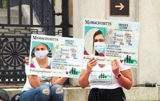 麻州支持為無證移民發放駕照的抗議者。 檔案圖片
