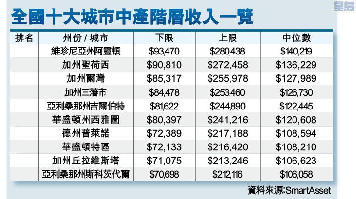 SmartAsset資料顯示,麻省家庭的年收入中位數為6萬6565元才被視為中產階層,是全國最高。其次為新澤西州、馬里蘭州和新罕布什爾州。