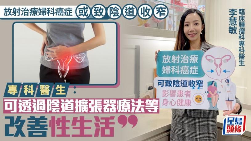 【婦科癌症/陰道收窄/性生活/社交】俗稱電療的放射治療常用於治療婦科癌症,惟可能引發陰道收窄、陰道乾澀等長期副作用,對患者性生活及社交的影響不容忽視。臨床腫瘤科專科醫生李慧敏表示,子宮內膜癌和子宮頸癌患者,接受放射治療後首三年,分別有5成和6成機率出現陰道收窄,情況會隨時間越趨嚴重,既影響醫生進行婦科檢查,更令患者性生活減少或停止,與伴侶關係受損。她稱,這些副作用是有方法作出改善,籲患者及早應對。