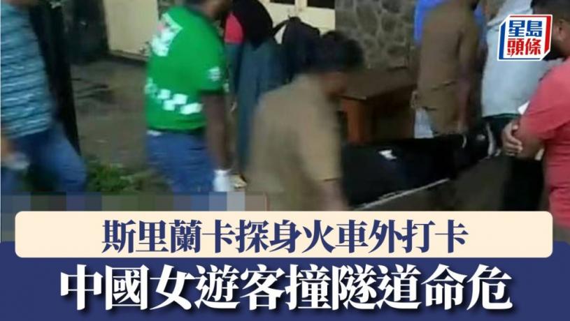中國有女遊客在斯里蘭卡乘搭火車時,疑因將身體伸出列車外拍照,頭部撞上隧道後墜軌,重傷送院搶救,目前情況危殆。