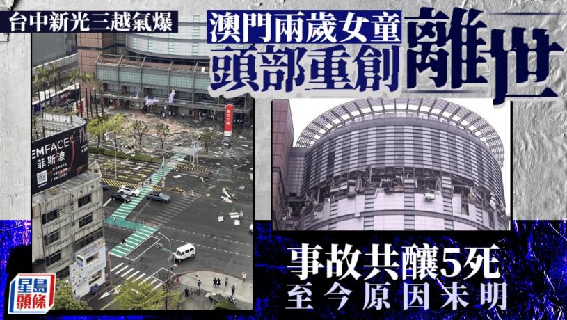 台中新光三越上月13日發生氣爆事故,當日其中一名頭部重創的兩歲澳門女童,於上周五離世 ,令事故共造成5人死亡。