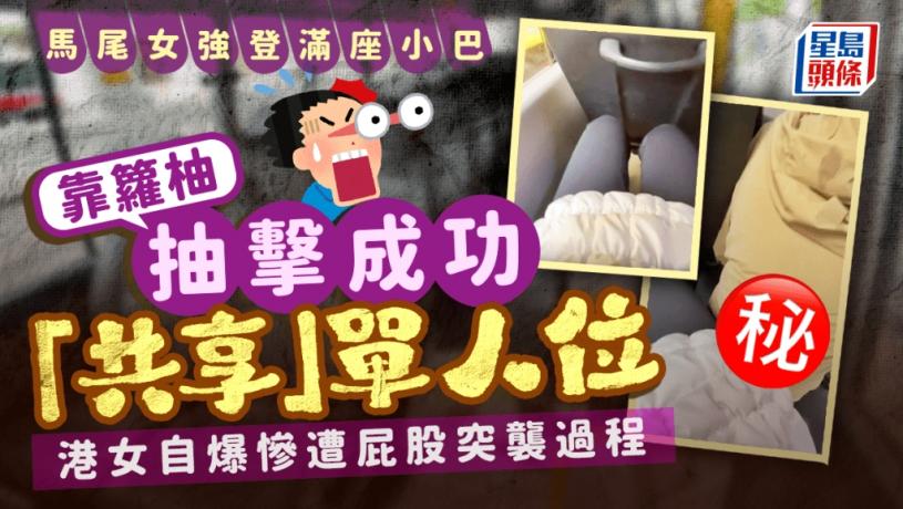 一名載鴨舌帽紮馬尾的女子,早前懷疑強行登上一輛滿座小巴,並針對車上其中一名女乘客施展籮柚攻勢,成功「共享」單人位。痛失半邊座位的港女在社交平台Threads上載短片發帖,講述慘遭屁股襲擊的心路歷程,網民都替她不值。