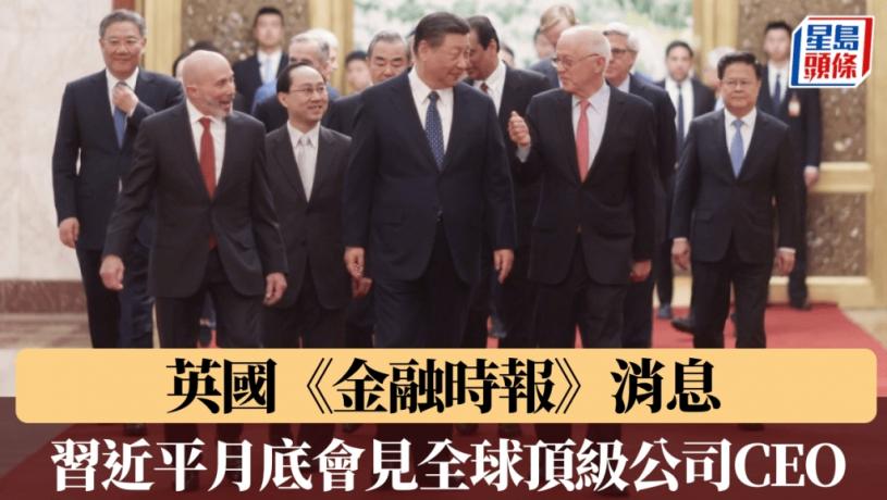 路透社引英國《金融時報》消息,近日,中國有關方面一直在與全球頂級公司的首席執行官接洽,商討本月晚些時候與國家主席習近平舉行會晤的事宜。