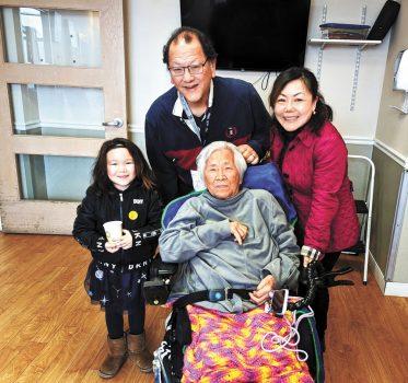 (後排左起)2024年5月,潘美貝兒、趙老師兒子、潘潔同趙老師合影。李强攝