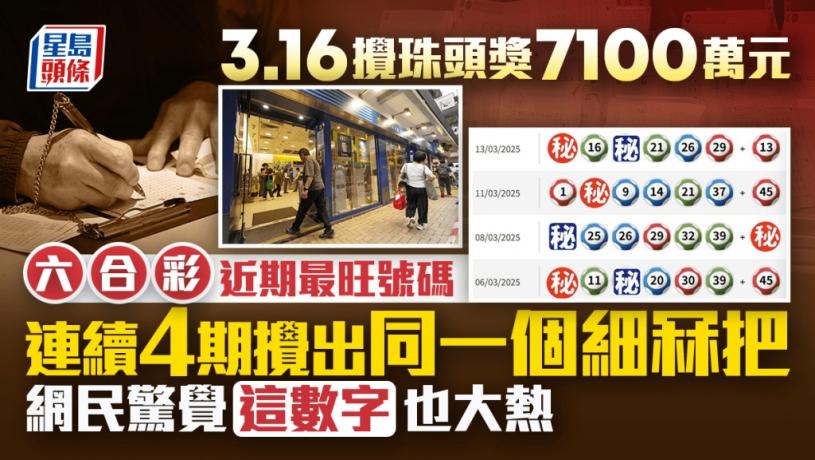相關閱讀:六合彩︱連續7期頭獎無人中 下期3.16攪珠 頭獎基金料達7100萬