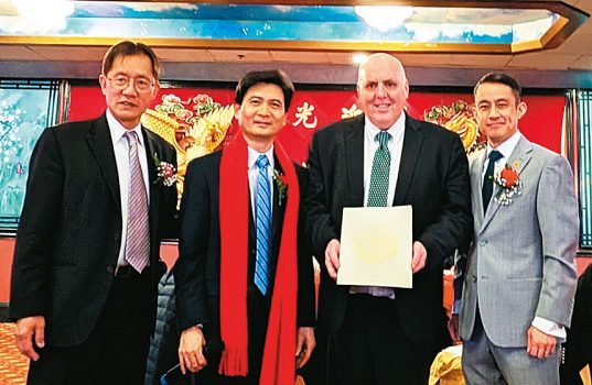 特別值得一提的是美東三益總公所顧問兼紐約台山聯誼會常務副會長江國驊先生在致詞中提到,過去200年來,台山人為美國建設做出不可磨滅的貢獻。去年,紐約州議會通過一項決議案,將每年2月12日定為台山日,以紀念台山移民為美國和紐約州做出的貢獻。他還介紹了一部由台山人拍攝的反映華僑生活的電影《故園飄夢》,並在晚宴現場播放片花,獲得來賓們熱烈的掌聲。