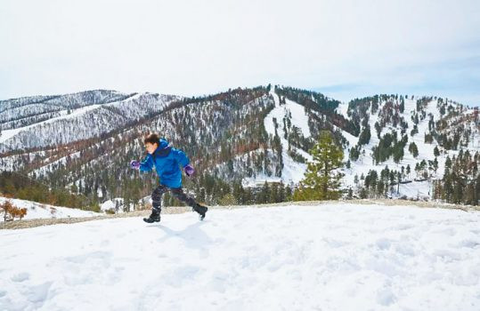 來自塔安那11歲男孩William Bui在天使國家森林玩雪。洛杉磯時報