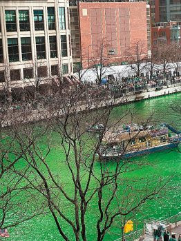3月16日早上,芝加哥慶祝聖派翠克日,染綠芝加哥河是全美獨一無二的一項慶祝活動。 梁敏育攝