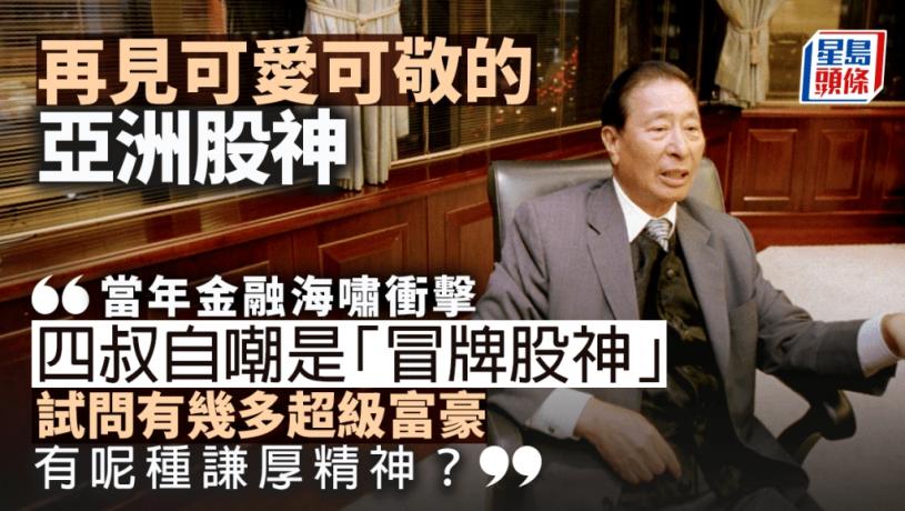 投資有贏有輸,四叔都唔係「逢買必贏」。 當年港股受到金融海嘯衝擊,四叔預估失靈,他也有自嘲是「冒牌股神」, 這又是一個可愛之處。 試問有幾多個超級富豪可以有呢一種謙厚精神?