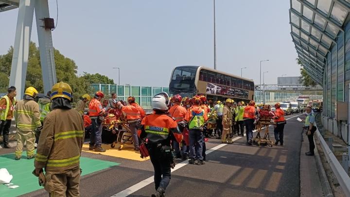 九巴74X大埔吐露港公路撞壆 車長及10乘客受傷送院 一女命危